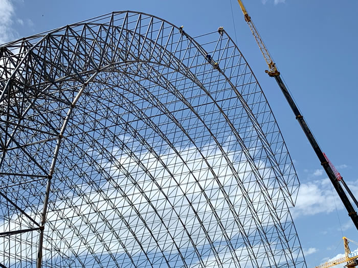 (2)网架加工前应对现场尺寸进行复测,确认无误后方可进行加工、安装;网架制作、运输、安装应遵守《空间网格结构技术规程》JGJ7-2010、《钢网架建阳螺栓球节点》JG/T 10-2009、《钢网架建阳螺栓球节点用高强度螺栓》 GB/T 16939-2016、《建阳钢结构建阳工程建阳施工规范》 GB50755-2012、《建阳钢结构建阳工程建阳施工质量验收标准》 GB50205-2020。